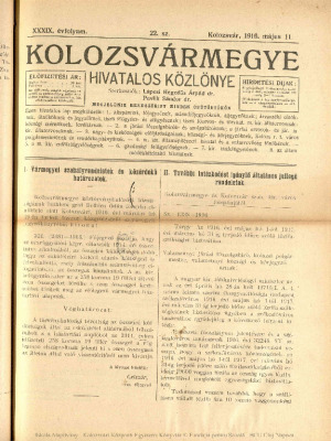 Kolozsvármegye Hivatalos Közlönye