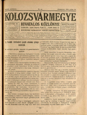 Kolozsvármegye Hivatalos Közlönye