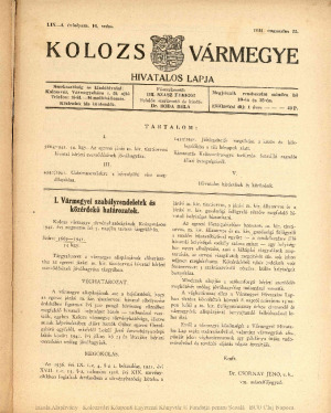 Kolozsvármegye Hivatalos Közlönye