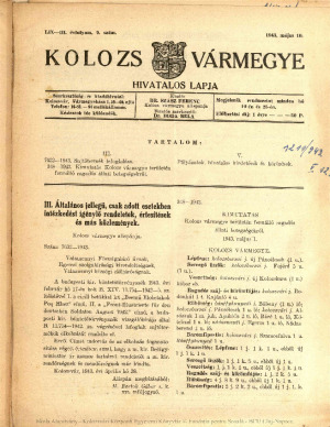 Kolozsvármegye Hivatalos Közlönye
