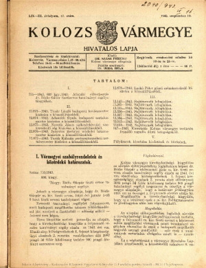 Kolozsvármegye Hivatalos Közlönye