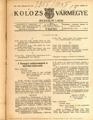 Kolozsvármegye Hivatalos Közlönye