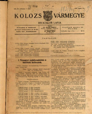 Kolozsvármegye Hivatalos Közlönye
