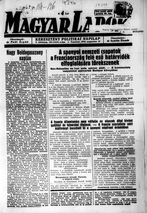 A polgári liberális és baloldali sajtóval szemben a lap a fasizmus előretörésekor egyre inkább jobbra tolódott, különösen Sulyok István bekapcsolódásával, aki innen támadta Kacsó Sándor népfronti írásait. A lap a spanyol polgárháború idején uszító szerepet vállalt a Franco-féle ellenforradalom szellemében, megtagadva a romániai magyarság demokratikus érdekeit s a spanyol köztársaság oldalán jogaiért küzdő baszk és katalán nemzetiséggel való szolidaritást. A demokrata és humanista meggyőződésű munkatársak ebben az időben elszakadtak a laptól. Forrás: Romániai Magyar Irodalmi Lexikon online.