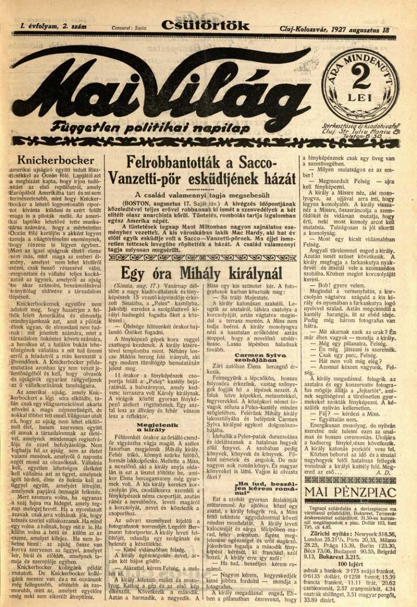 A Mai Világ - Erdélyi Kurír - A Világ a Kolozsvári Központi Egyetemi Könyvtár katalógusában P 1800 jelzettel érhető el.